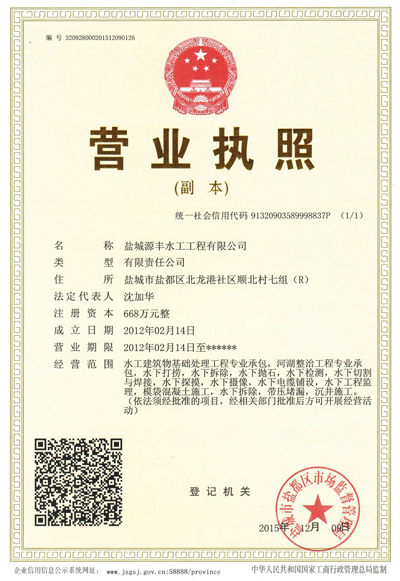 鹽城源豐水工工程有限公司是一家專(zhuān)業(yè)從事水下作業(yè)的股份制企業(yè),公司多年以來(lái),堅(jiān)持以人為本,誠(chéng)信經(jīng)營(yíng),憑借質(zhì)量、效率、信譽(yù)的作風(fēng)贏(yíng)得客戶(hù)的信賴(lài)和贊譽(yù)。